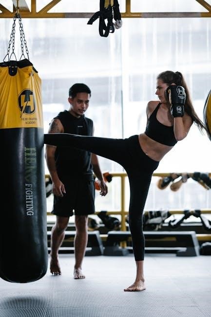 Sparring gloves are designed for partner drills and live action, ensuring safety for both participants. They typically weigh between 12 to 16 ounces, with sizes correlating to the user’s weight. For instance, 120-150 lbs individuals often use 12-14 oz gloves, while heavier boxers may opt for 16 oz. Proper fit is essential to prevent injury, with a snug yet comfortable feel. The cushioning and padding in sparring gloves are thicker than training gloves, offering enhanced protection during impact. They are a critical investment for anyone engaging in regular sparring sessions, balancing durability and performance for optimal results in the ring.